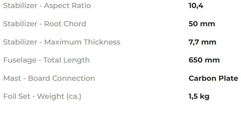 A asa gera sustentação adicional, permitindo uma decolagem mais precoce e reduzindo a pressão no estabilizador traseiro. O resultado é um voo mais plano, rápido e equilibrado, mesmo em altas velocidades.